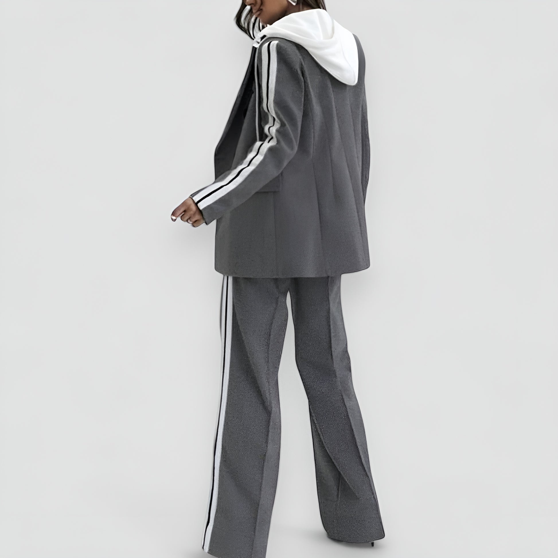 Forestil dig: Dig, i Emilie™ Blazer og Bukser, hvor hvert skridt er et statement af raffinement og moderne luksus. Dette ensemble er den perfekte balance mellem high-end håndværk og moderne streetwear, designet til kvinden, der altid er et skridt foran. De strukturerede linjer, dristige accenter og unikke detaljer gør Emilie™ til et must-have for enhver modebevidst kvinde. Uanset om du vil gøre indtryk til et eksklusivt event eller opgradere din daglige stil, giver Emilie™ en ubesværet elegance, der ikke går ubemærket hen.