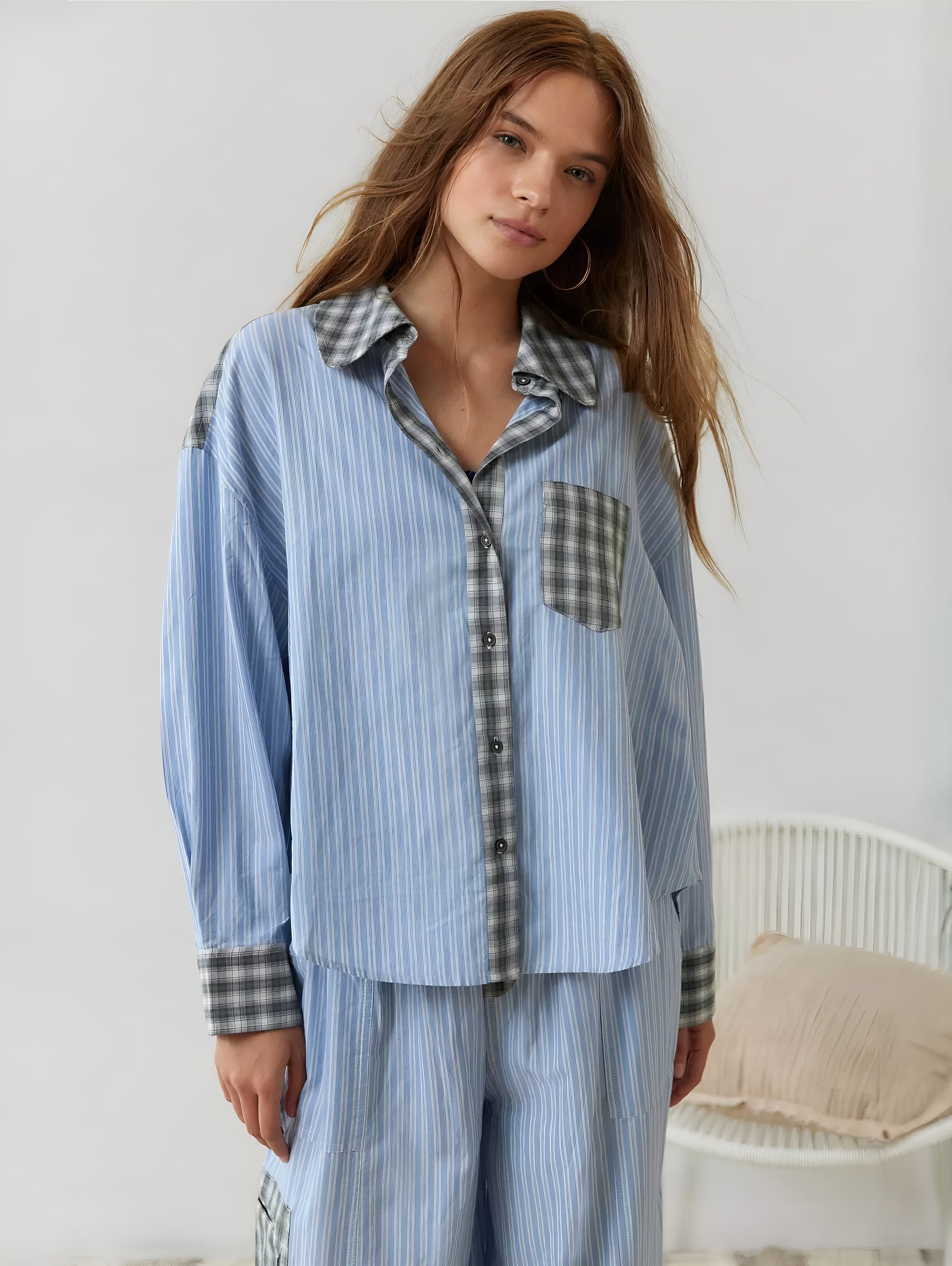 Med sin afslappede pasform giver dette pyjamasæt dig frihed til at bevæge dig komfortabelt. Det er ideelt til både søvn og hyggelige stunder derhjemme.